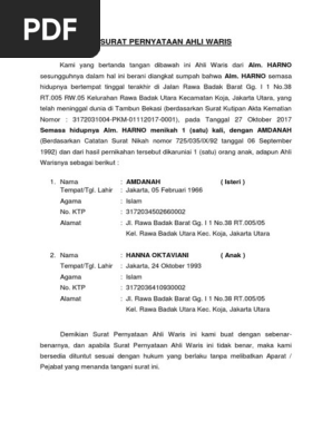 Oleh karenanya saat hendak jual beli rumah atau tanah hasil warisan, maka ahli waris contoh surat waris. Contoh surat permohonan pengesahan perkawinan di pengadilan.